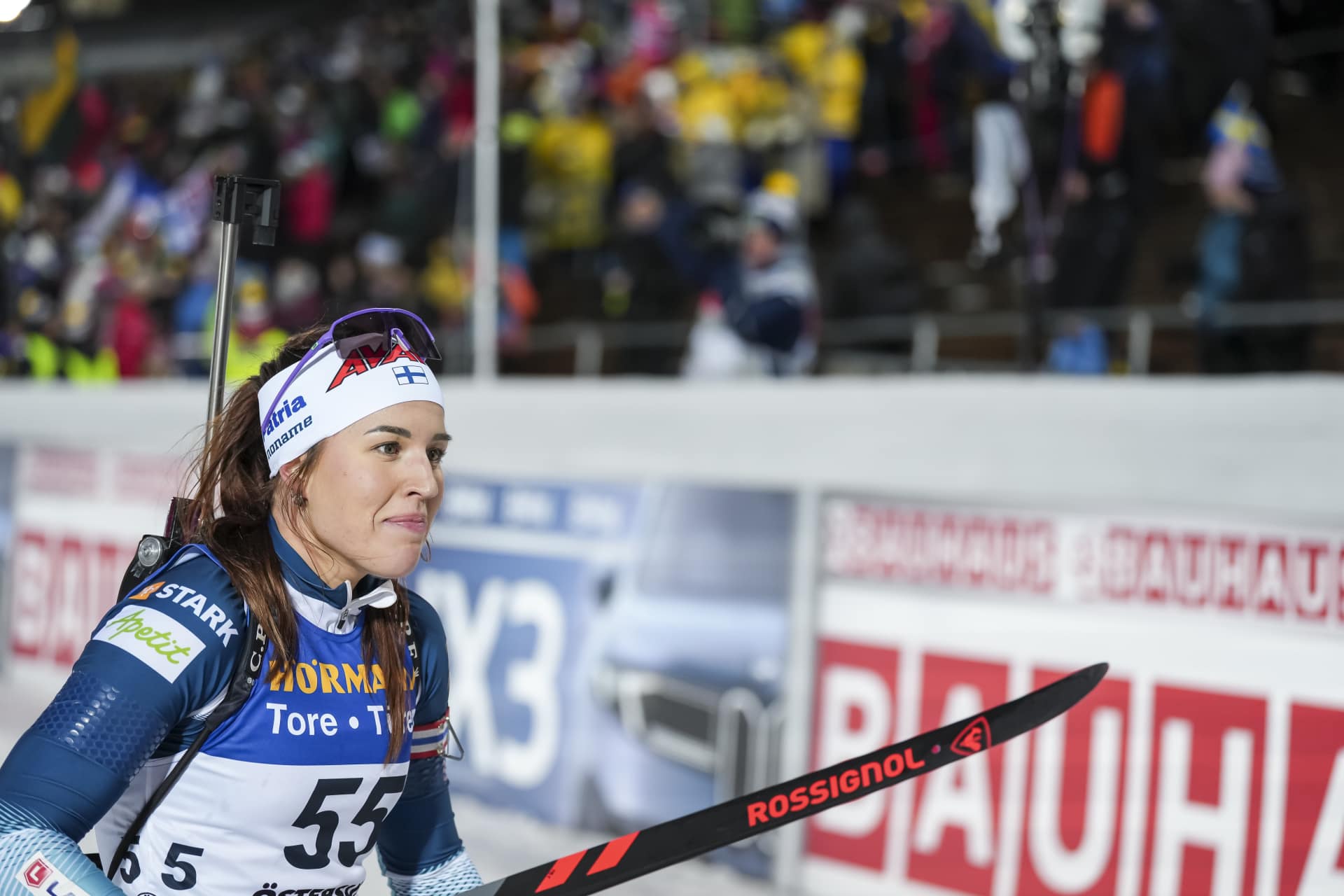 Yesterday was the biggest day in Sonja Leinamo’s biathlon career. She left the last standing stage in the Oestersund Women’s 15 km Individual in first position with a 9-second bulge over Dorothea Wierer, only to have the Italian veteran snatch victory in the final meters by a mere .3 seconds. Regardless, Leinamo finished in a brilliant second place, then shared hugs and tears of joy with teammate Suvi Minkkinen, celebrating the 23-year-old’s first-ever World Cup podium.