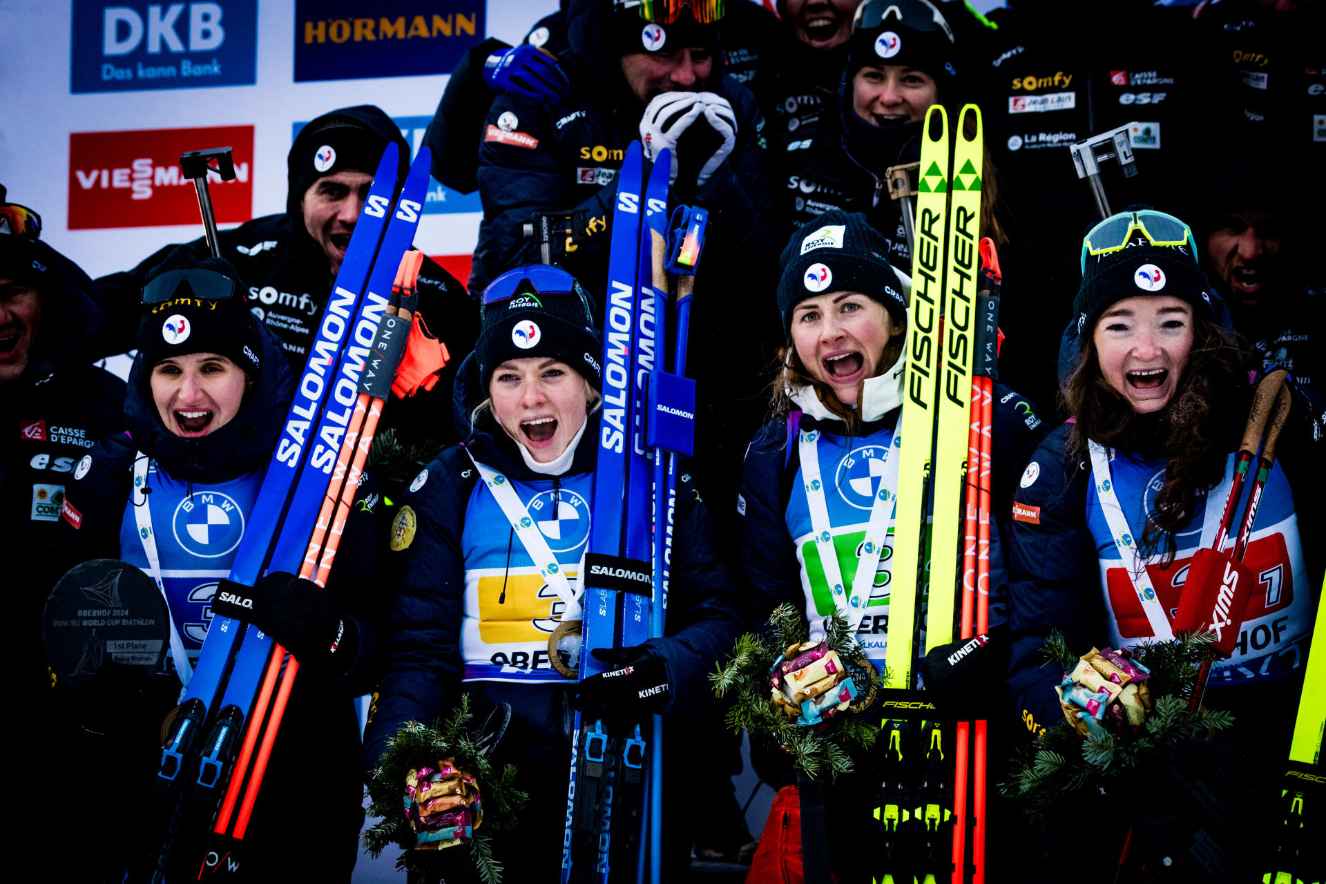 Norway with ten spares finished second, 9.3 seconds back. Sweden, with a penalty and eight spares finished third, 33.5 seconds back. Fourth, fifth and sixth placed Italy, Germany and Czechia all suffered with penalties due to the strong wind and fatigue from the previous days of tough conditions, finishing 3:33.9, 4:20.6 and 4:39.6 back respectively.