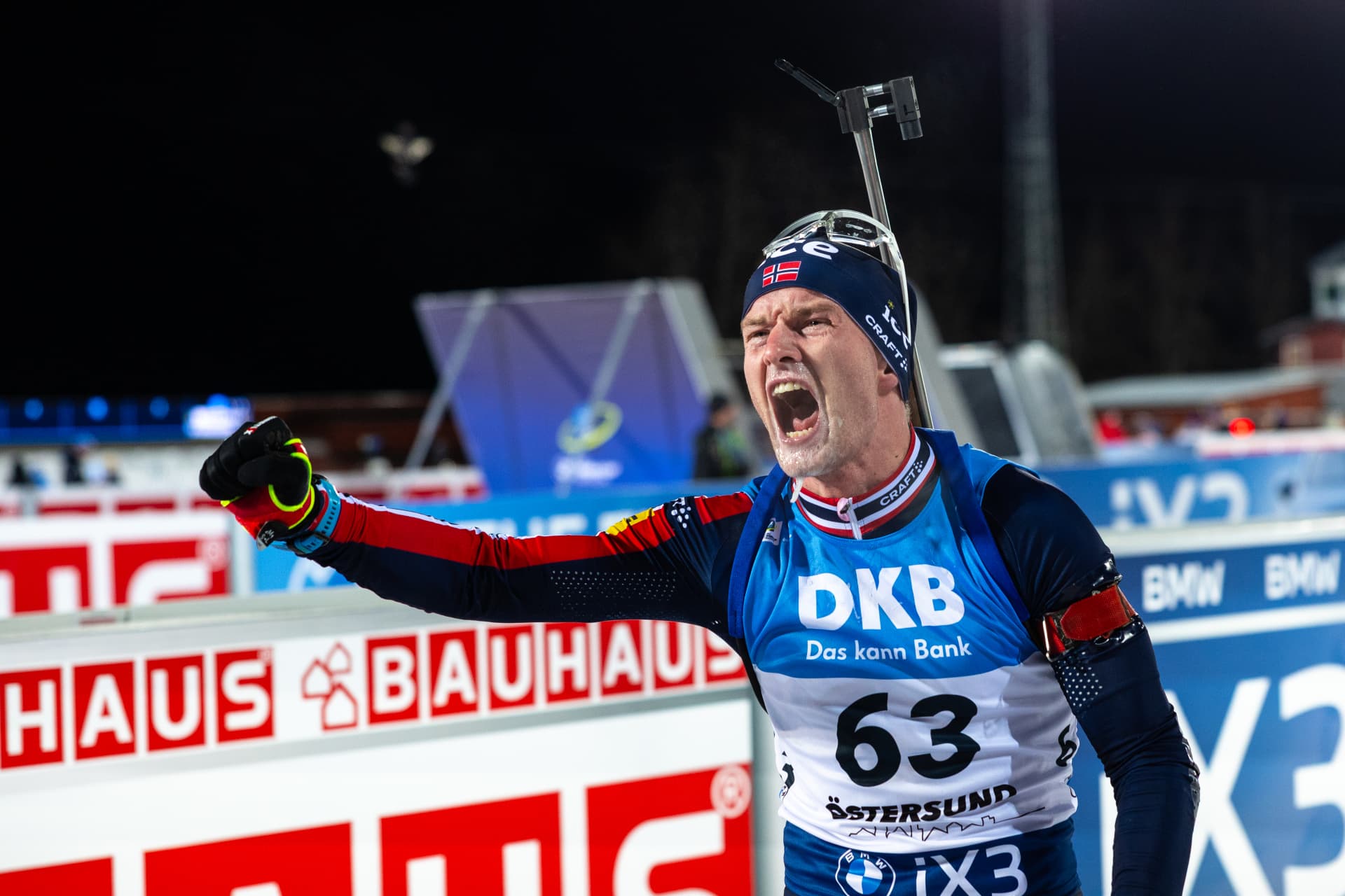 Teammate Martin Uldal also shot clean in second place, 57.7 seconds back. Sweden’s Sebastian Samuelsson, with a single penalty finished third, exactly one minute back for his seventh podium in his home stadium.
