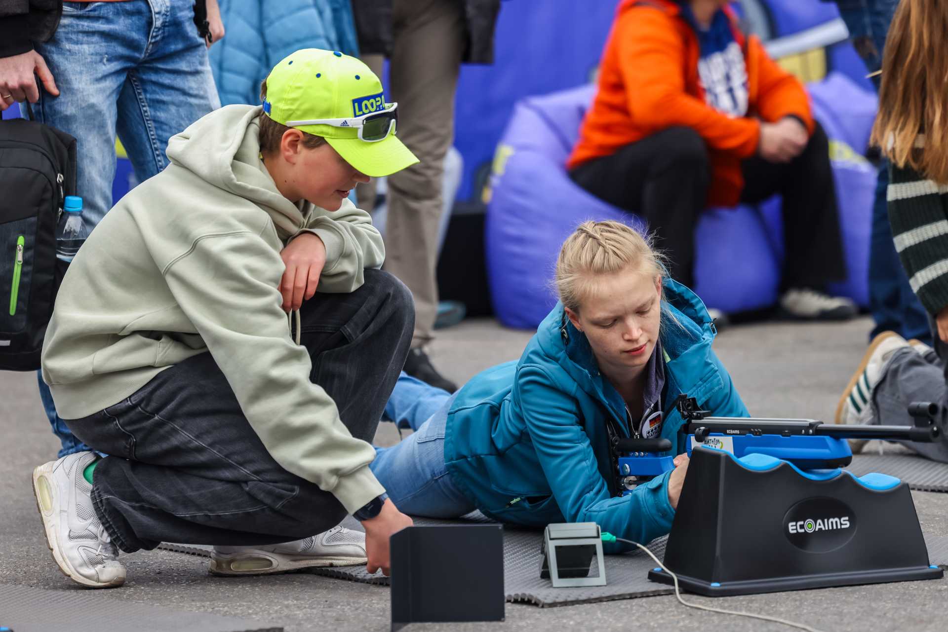 To give as many participants as possible the chance to take part, the IBU and its partners created three shooting ranges with a total of 30 laser rifle lanes across the festival grounds. The ranges were located at Hans-Jochen-Vogel Platz (HJV), the Kleine Olympiahalle and the Halbinsel, each equipped with ten lanes for both prone and standing shooting. At the HJV site, visitors were also able to try specialised rifles designed for visually impaired athletes, which use acoustic signals via headphones to help aim at the target.
