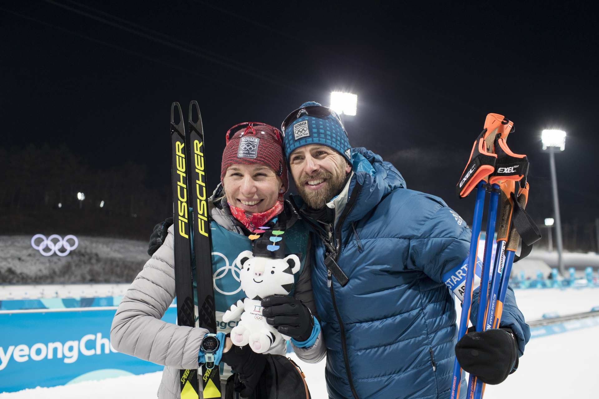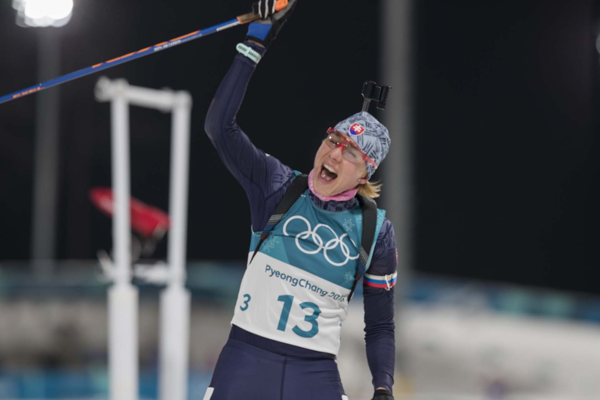 Kuzmina and BescondAlmost 30 seconds after Dahlmeier’s triumphant finish, Kuzmina and Bescond entered the stadium. The two women fought right up to the finish line for the Silver medal, with the visibly tired Slovak taking the Silver with a lunge at the line, just .2 seconds ahead of Bescond. Kuzmina punched the sky emphatically with her ski pole, a feeling of relief and joy after missing a sprint medal. She commented, “Today was very hard. The shooting was the most deciding, but I knew that I had very good skiing. I know that Laura is very good, so I tried to do the best that I could.”