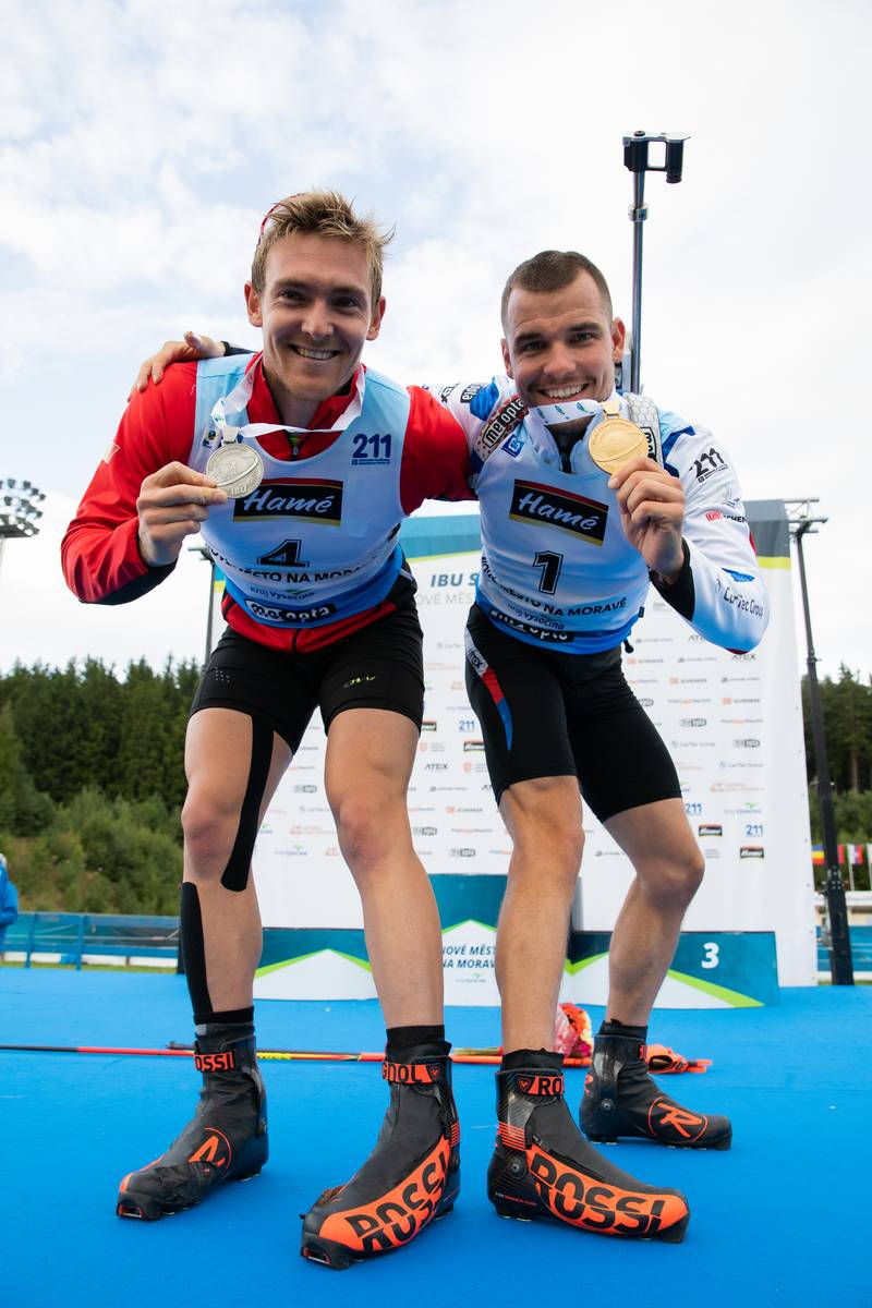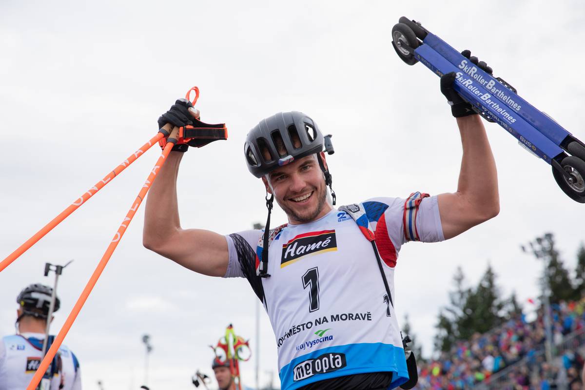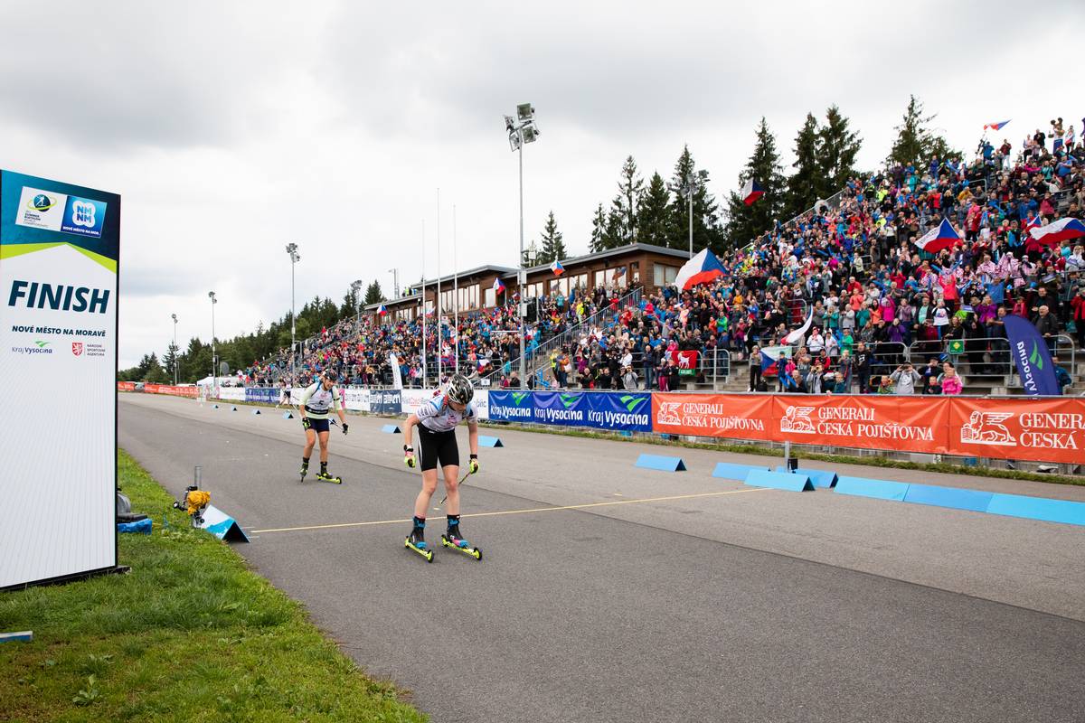 Marketa Davidova of Czech Republic gave the local fans another thrill when she outsprinted Ukraine’s Yulia Dzhima after a last loop battle to claim the Women’s 7.5 km Pursuit Gold medal this afternoon at the IBU Summer Biathlon World Championships in Nove Mesto na Moravě. Davidova had three penalties in her 20:57.3 victory. Just after Davidova’s stirring win, Michal Krcmar matched his teammate, taking the Men’s 10 km Pursuit Gold medal, and giving the home team Czech Republic a sweep of the senior titles just hours after their junior men won all pursuit three medals. Krcmar, brilliant on the shooting range, had a single penalty in his runaway 27:01.5 win.