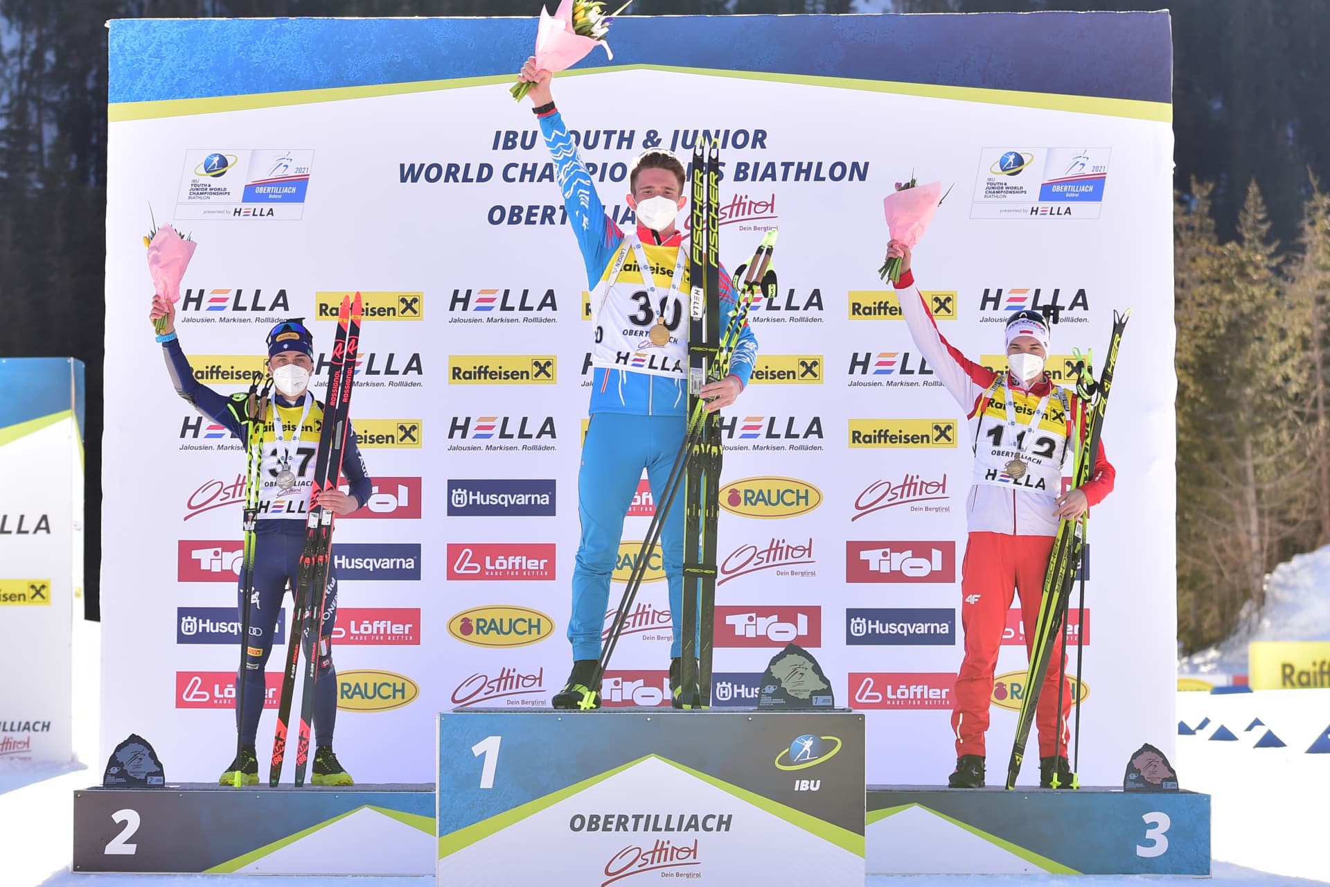 Стремительно стартовав под 30 номером, Денис Иродов вихрем пронесся по трассе, ни разу не оглянувшись и выбив 10 из 10; на этом Чемпионате мира он пока обходится без промахов. Россиянин также оказался самым быстрым из всех участников после обоих огневых рубежей. Это второе золото Иродова и российской команды в Обертиллиахе. Пиллер Коттрер был не так хорош на первом круге, однако на втором и третьем показал лучший и пятый результаты по скорости. Гунка с номером 112 на майке последним вступил в гонку и оставил незакрытой одну мишень при стрельбе лежа, но после стойки выдвинулся на четвертую позицию, уступая 8.5 секунды шведу Оскару Андерссону, который на тот момент замыкал тройку лидеров. На последнем круге Гунка стал третьим по скорости, на 13.5 секунды обогнав Андерссона, который удовольствовался четвертым местом с отставанием в 32.9 секунды. Пятое и шестое места достались Мартину Заволу из Польши с тремя промахами и Эрику Ларссону из Швеции с двумя промахами. Их отставание от победителя составило 37.9 и 48.2 секунды соответственно.